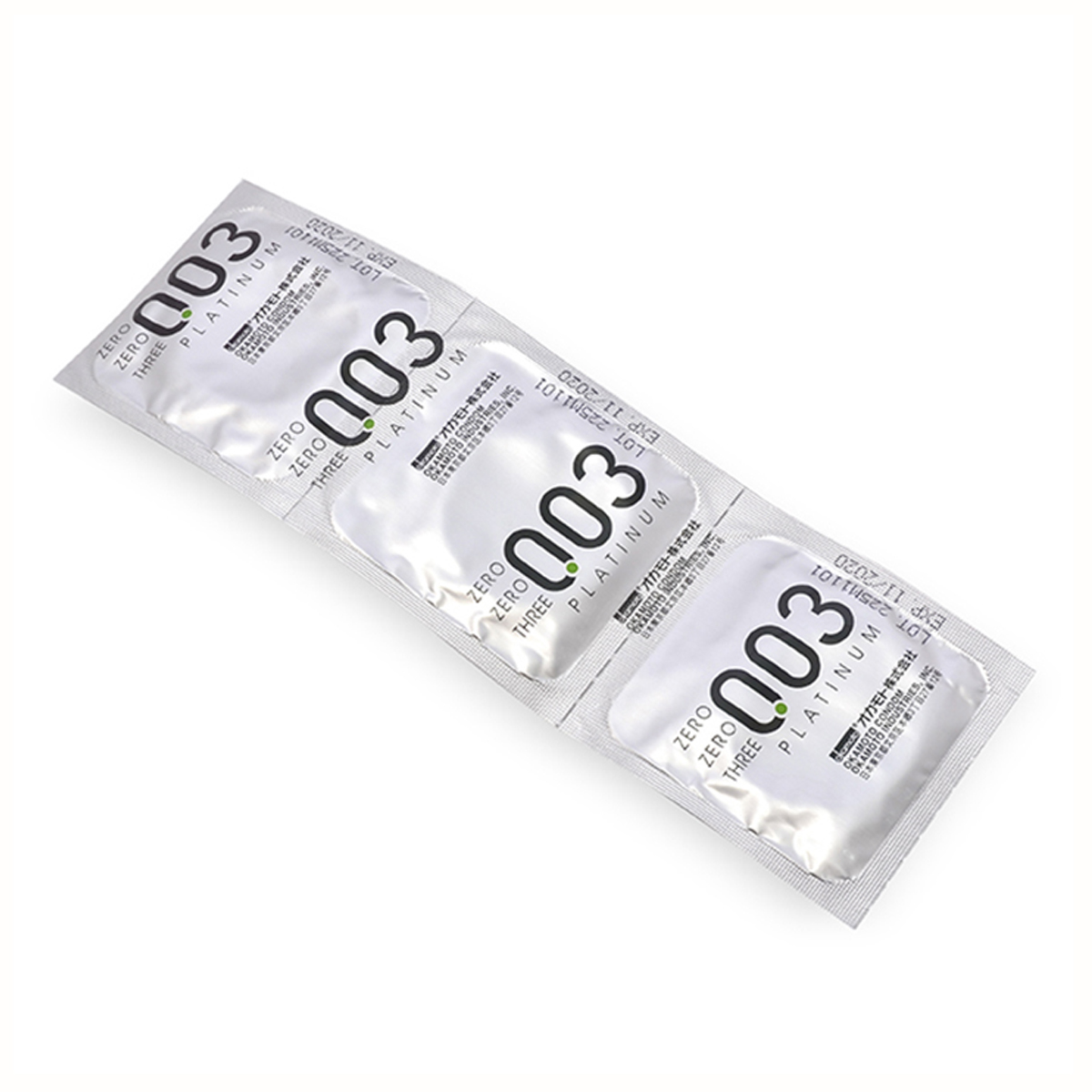 Bao cao su Okamoto 0.03 Platinum Trong Suốt Mềm Mại Hộp 3 Cái