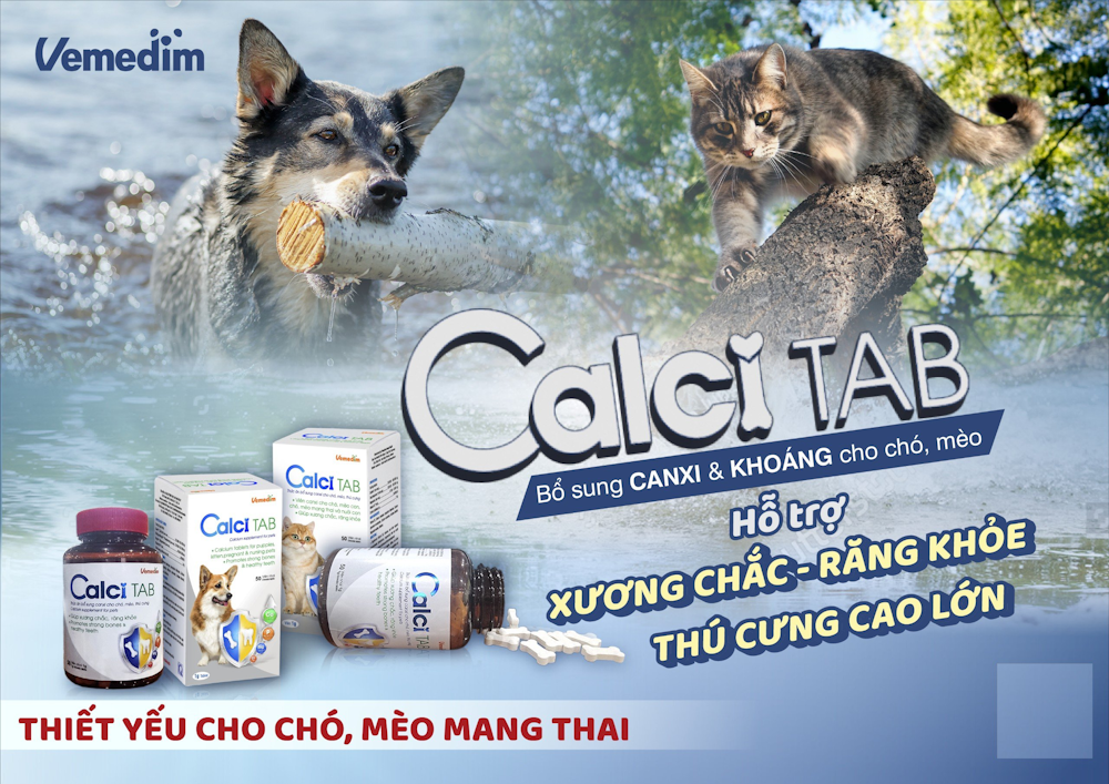 Vemedim Calci tab viên canxi cho chó và mèo con, chó và mèo mang thai giúp xương chắc, 1 hộp 50 viên THÀNH PHẦN: Trong 1 kg có chứa: Canxi * (Calcium) ( 000-165 000