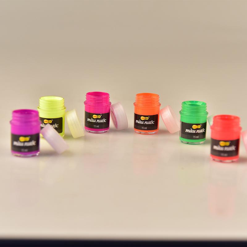 Màu nước Thiên Long Colokit WACO-C011 dạng màu nước được đựng trong mỗi lọ nhựa dung tích 15ml trong suốt nhận diện được màu bên trong.