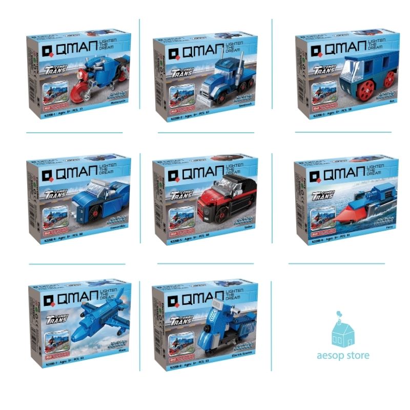 Bộ lắp ráp Đội xe Công trình Qman 42206 gồm 8 hộp chứa khoảng 65 mảnh ghép, ráp được 8 mô hình xe xe mô tô, tàu thuỷ, máy bay...Hoặc 1 TÀU HOẢ lớn