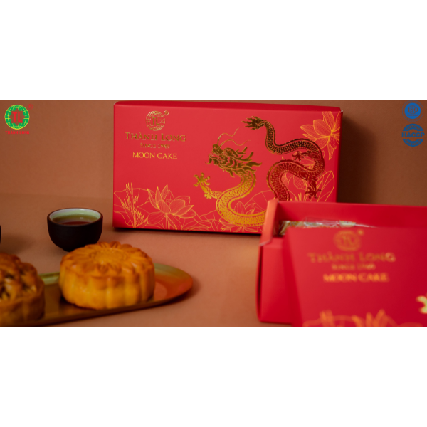 Với sản phẩm tươi sống, trọng lượng thực tế có thể chênh lệch khoảng 10%. Hộp bánh trung thu 4 bánh 2 trứng 270g - Thịnh Vượng - Thành Long 1080g - tặng 1 hộp