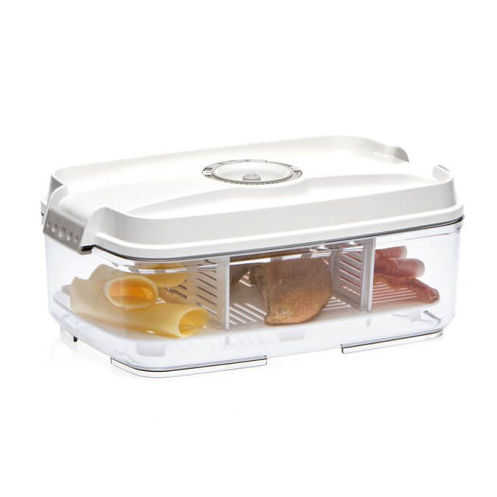 Hộp bảo quản được làm bằng nhựa cao cấp Tritan trong suốt không chứa BPAGia tăng tuổi thọ thực phẩm tươi sống, thực phẩm chín lên tới gần 4 lầnTích hợp lịch trên nắp cho phép đánh dấu ngày lưu trữ ...