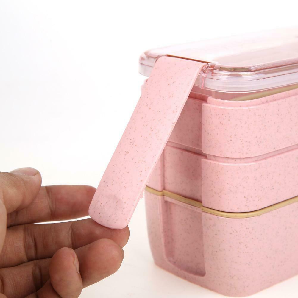 Thiết kế gọn nhẹ với 1 ngăn lớn và 2 ngăn nhỏ, tặngkèm 1 đôi đũa,1 thìa bằng Inox. Nắp đậy khít, chống tràn với 2 khóa bên hông.