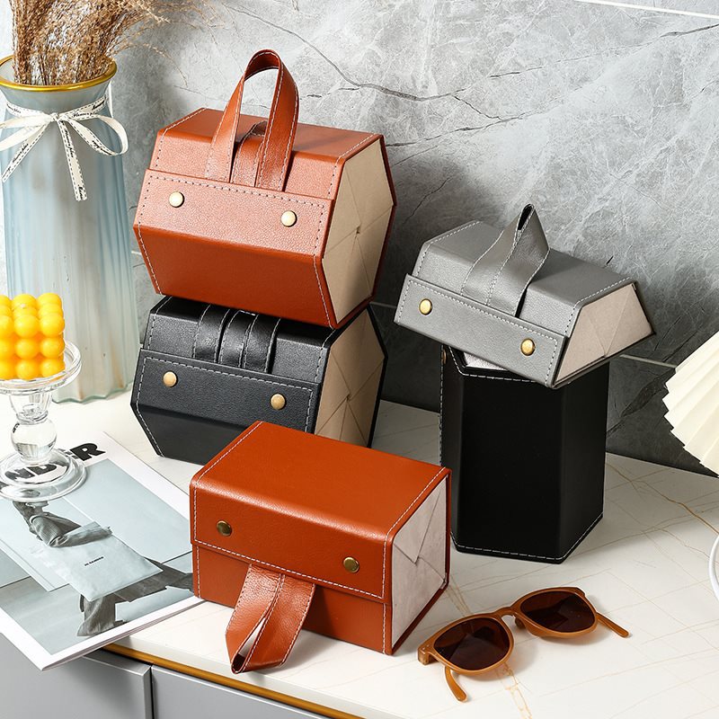 -Hộp da PU đựng mắt kính 3 ngăn cuộn tròn , có nút bấm tiện lợi ,có thể treo hoặc xách , mang đi mọi nơi , bảo vệ mắt kính khỏi bụi và hư hỏng