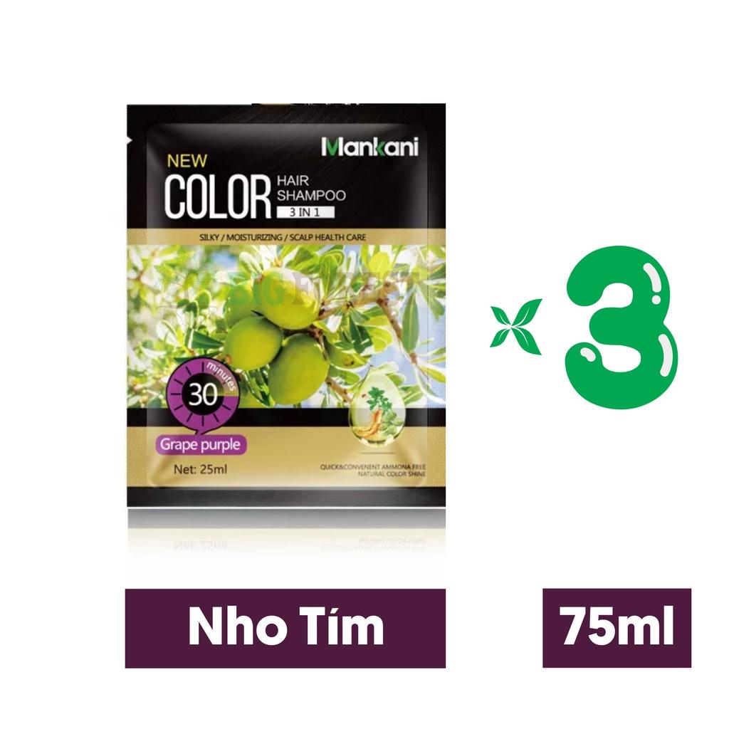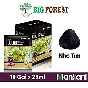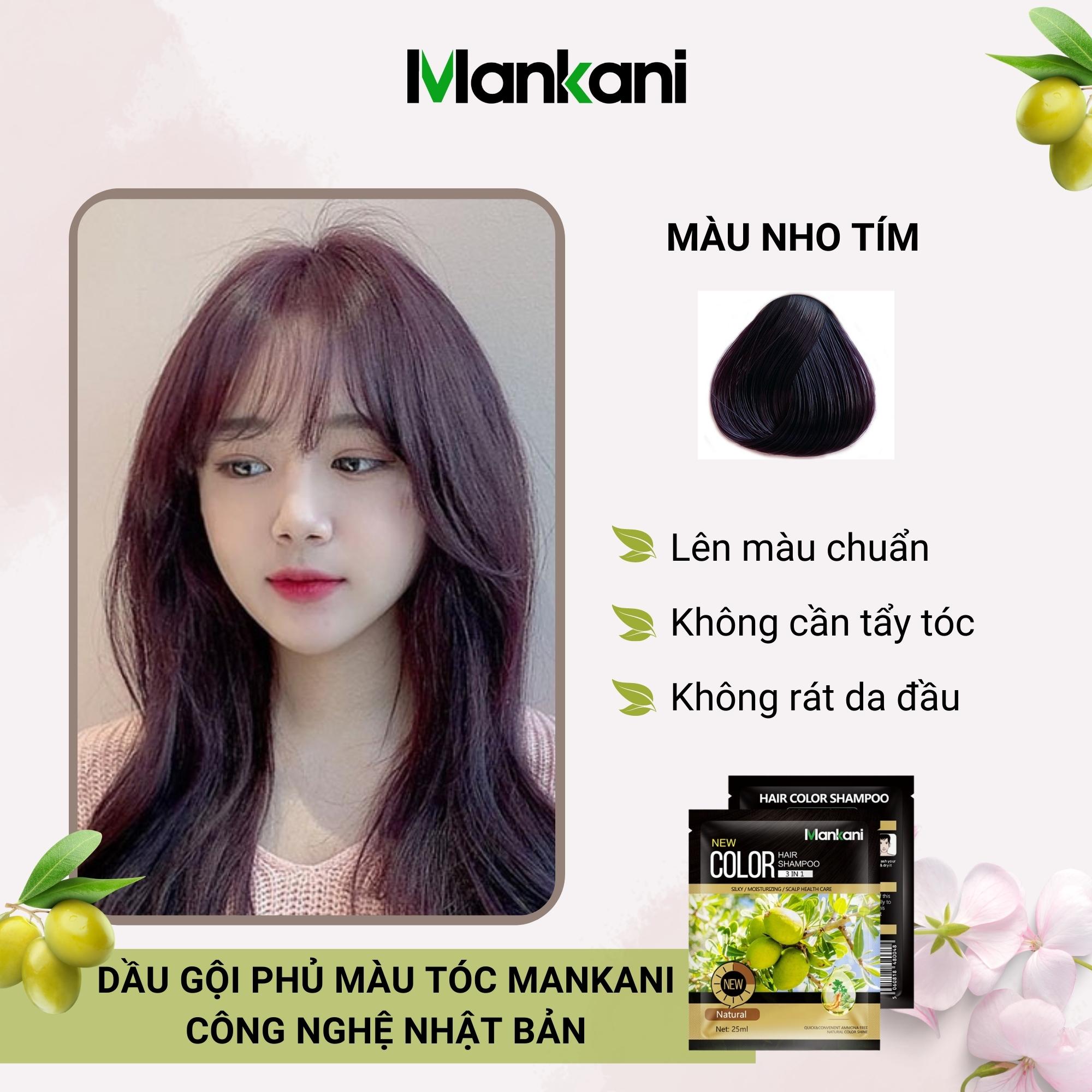 Hộp dầu gội nhuộm tóc, phủ bạc thảo dược tự nhiên Nho Tím Mankani [10 Gói ~ 250ml - Chính Hãng] Mô tả : Ưu điểm vượt trội : ✓ Không bị xơ tóc khi