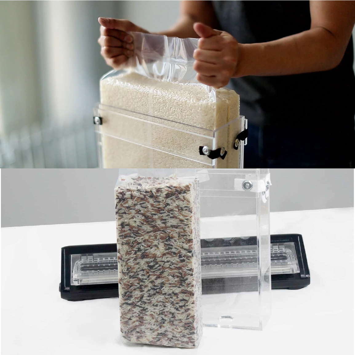 Nhận thấy tầm quan trọng đó, công ty SGE đã thiết kế, sản xuất và phân phối hộp định hình gạo nhằm đáp ứng nhu cầu của khách hàng, giúp đóng gói túi gạo vuông thành sắc cạnh rất thẩm mỹ.
