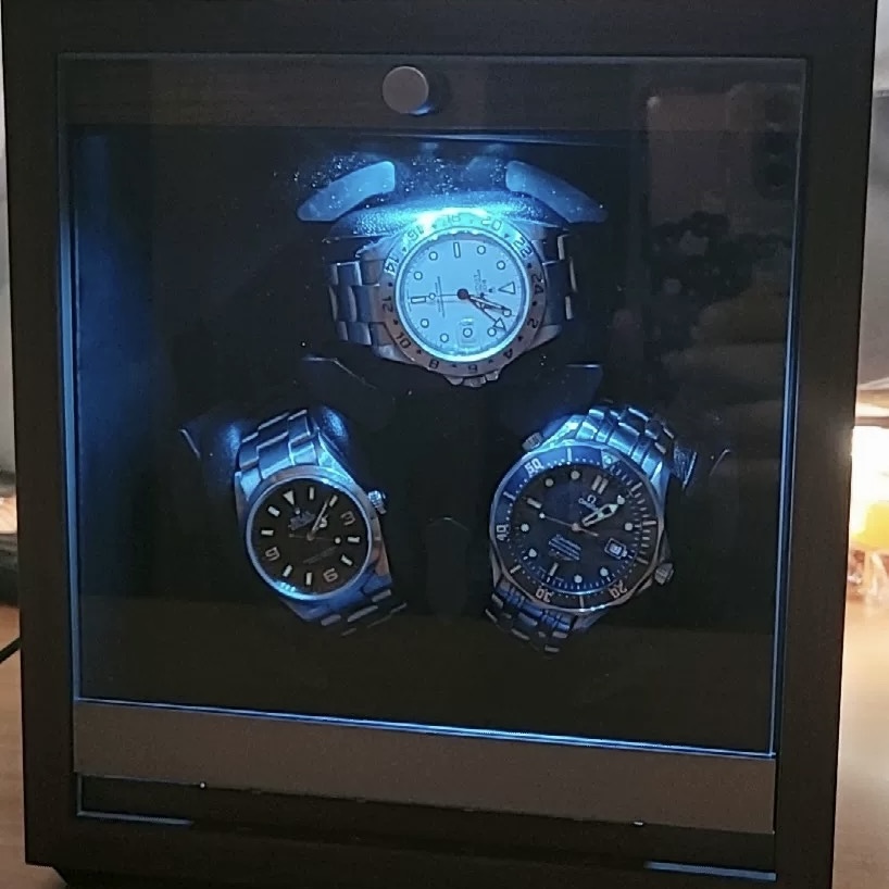 Hộp lên cót cho 3 chiếc đồng hồ cơ, 5 chế độ xoay, cửa kính tự dừng, đèn LED #watchwinder