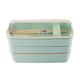 Hộp Đựng Cơm Ăn Trưa Văn Phòng 3 Ngăn Loại 1 - Nhựa/Lúa Mạch- Kèm Đũa Thìa - Sử Dụng Lò Vi Sóng