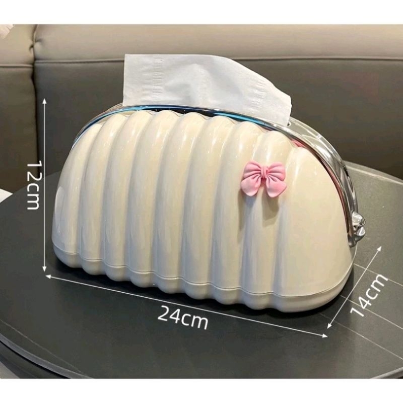 Hộp Đựng Giấy Ăn Vỏ Sò Cao Cấp Kèm Nơ Hồng ABS Kem 24x14x12cm Lò Xo Tiện Dụng Hiện Đại Hộp đựng giấy với thiết kế vô cùng xinh xắn, bắt mắt, vừa sử dụng
