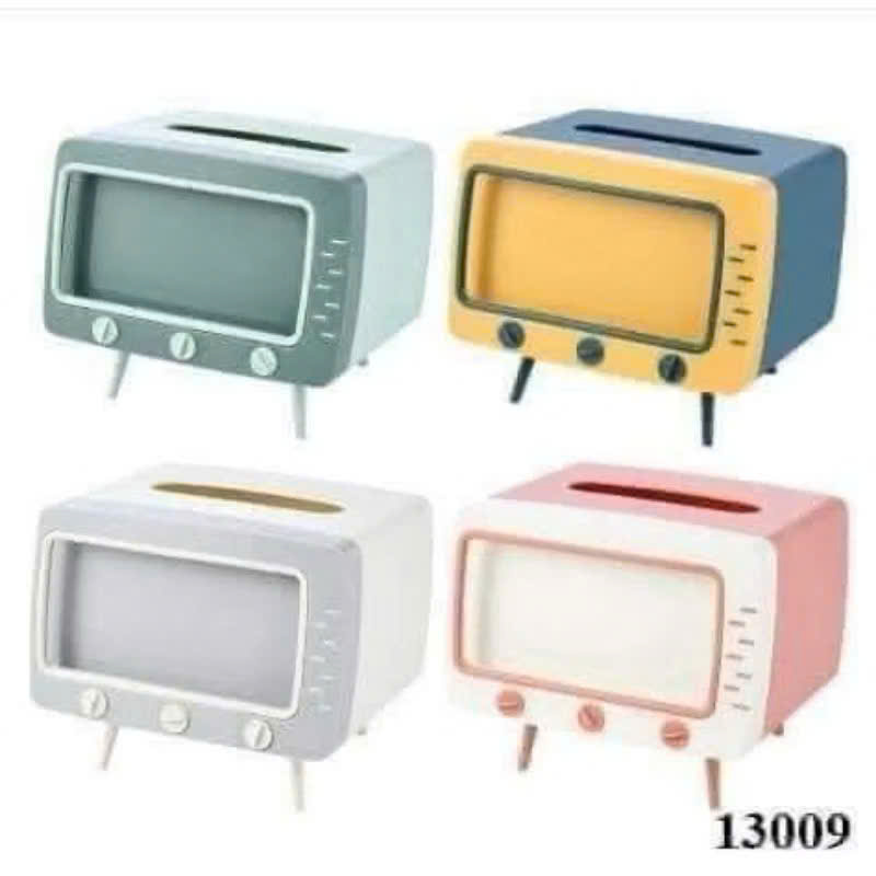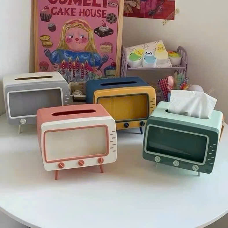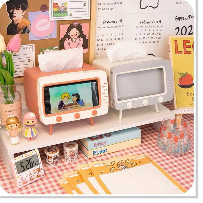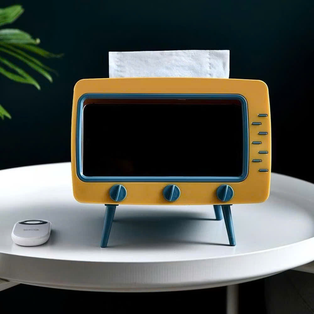 Thiết kế đẹp độc lạ hình dáng như chiếc tivi ngày xưa, mặt trước có chỗ để màn hình điện thoại, bên trong lại là hộp giấy ăn vô cùng tiện dụng, đặt trên bàn