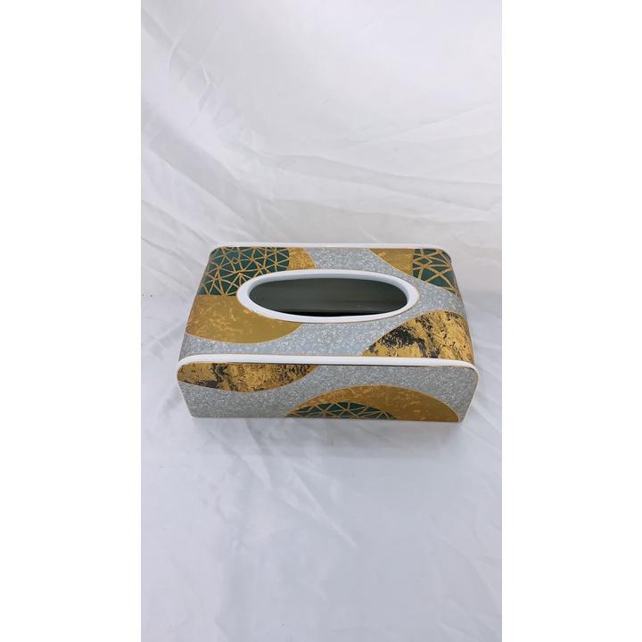 ✨HỘP ĐỰNG KHĂN GIẤY, GIẤY ĂN BẰNG GỐM SỨ CÁO CẤP PHONG CÁCH CHÂU ÂU MÀU VÀNG RẠN