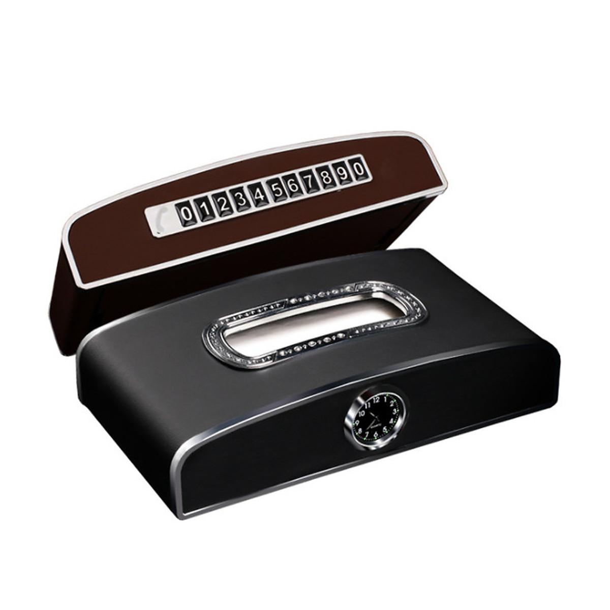 ✨Hộp đựng khăn giấy kiêm bảng sdt và đồng hồ cao cấp đặt taplo ô tô, xe hơi TB-6137