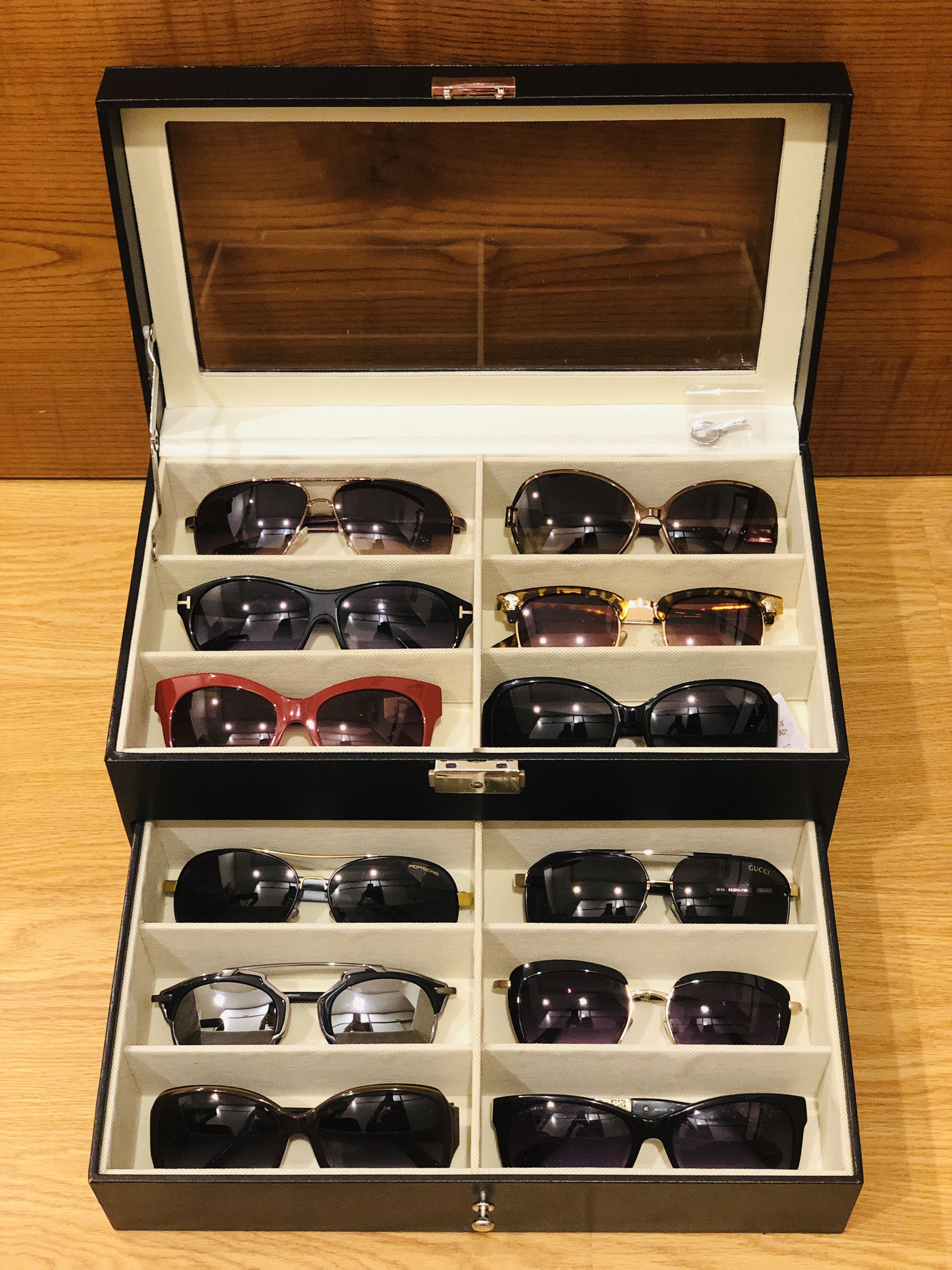 - Hộp Đựng Mắt Kính 12 Cái SAIKE S838 Bọc Da Màu Đen 2 Tầng