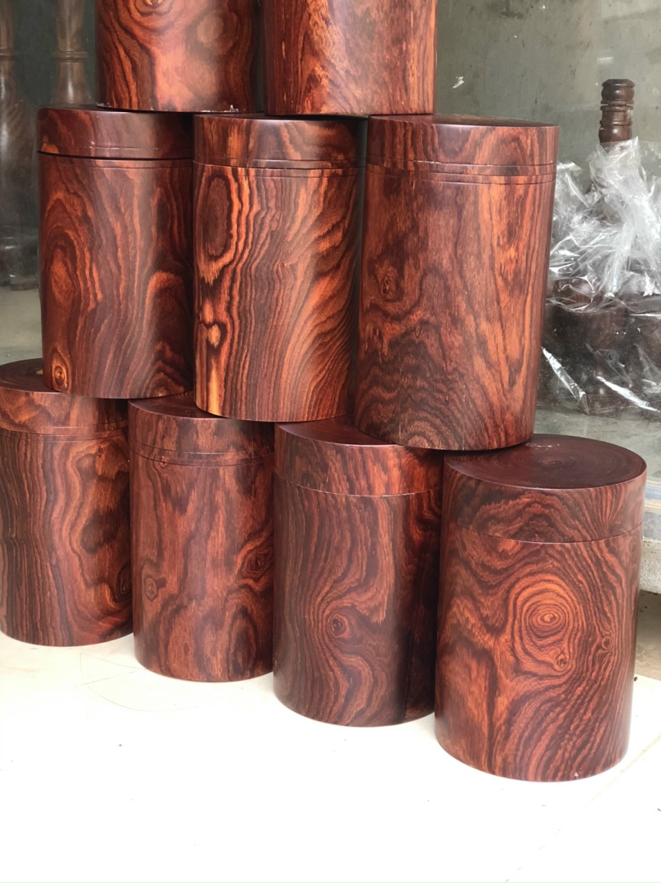 Hộp trà tròn gỗ trắc dây. Cao 20cm. LH: 0983432462