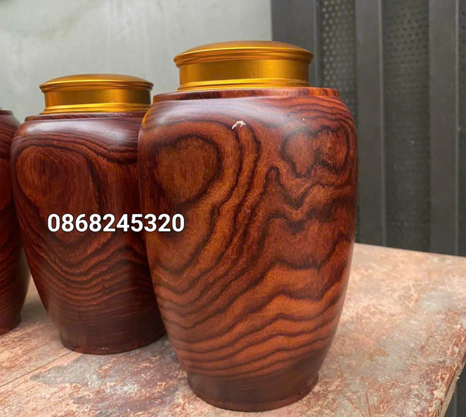 Hộp trà tròn gỗ trắc dây. Cao 20cm. LH: 0983432462