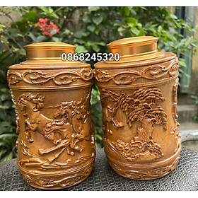 _ Hộp đựng trà chè được làm bằng chất liệu gỗ bách xanh thơm nức liền khối tự nhiên 100% _ Kt cao 20 thân tròn 12cm _ Hộp được khắc nổi tỉ mỉ ,tinh
