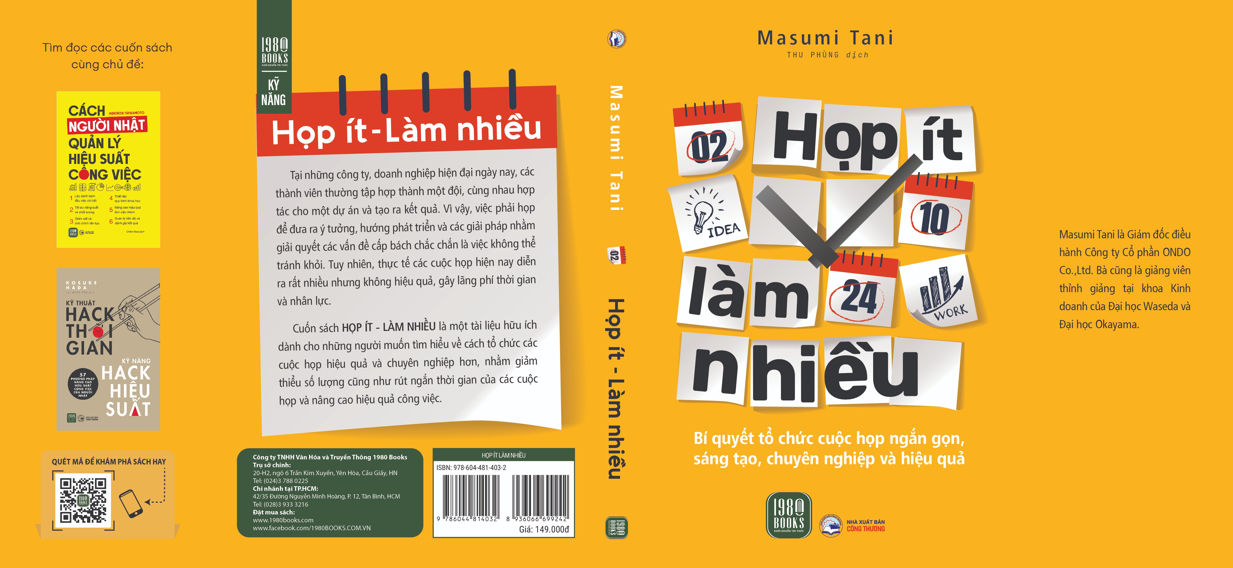 Cuốn sách HỌP ÍT - LÀM NHIỀU là một tài liệu hữu ích dành cho những người muốn tìm hiểu về cách tổ chức các cuộc họp hiệu quả và chuyên nghiệp hơn, nhằm giảm thiểu số lượng, cũng như rút ngắn thời gian của các cuộc họp và nâng cao hiệu quả công việc.