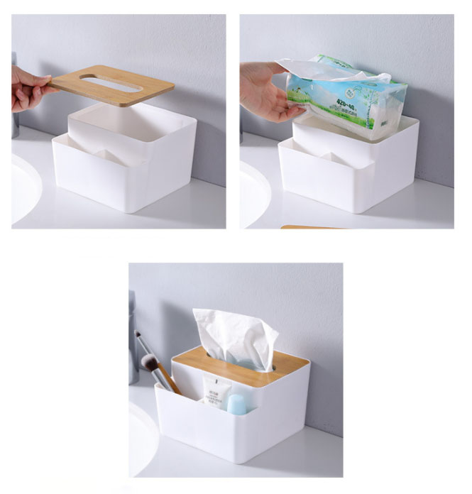 – Ngoài một khe dùng để đựng khăn giấy thì chiếc hộp này còn là đồ dùng phòng tắm, đồ dùng văn phòng hay để trên bàn học cũng rất tiện lợi