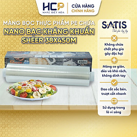✨Hộp Màng Bọc Thực Phẩm PE Kháng Khuẩn 38cmX450m SATIS Phủ Nano Bạc An Toàn Cho Sức Khỏe Dùng Được Cho Lò Vi Sóng