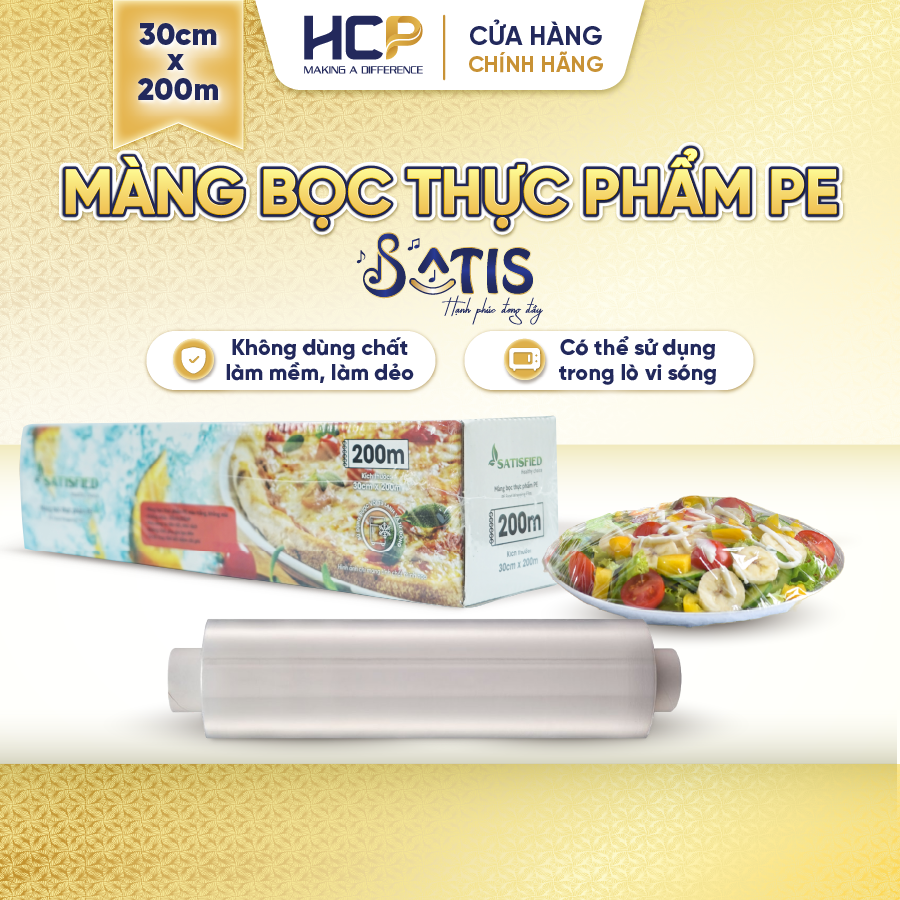HCP chuyên sản xuất màng căng công nghiệp, màng bọc thực phẩm PE và cung cấp các sản phẩm gia dụng khác như giấy bạc nướng, giấy thấm dầu và găng tay TPE.