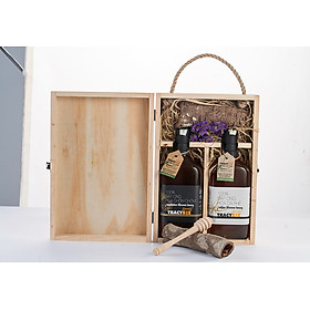 Hộp quà gỗ đôi mật ong hoa chôm chôm và cà phê 189ml gồm 01 mật ong hoa cà phê 189ml và 01 mật ong hoa chôm chôm 189ml, trong đó, mật ong hoa chôm