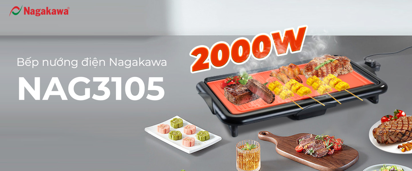 TIỆC NƯỚNG TẠI NHÀ SIÊU NGON VỚI BẾP NƯỚNG 2 MẶT NAGAKAWA NAG3102