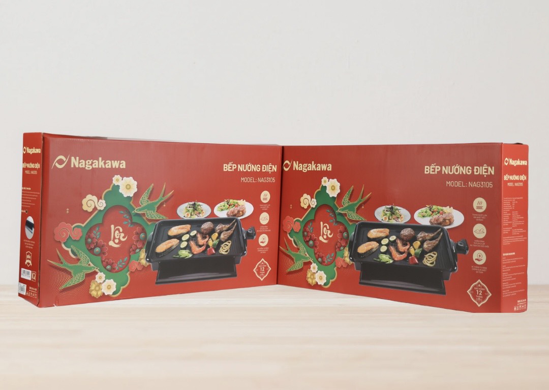 Bếp nướng điện đang là thiết bị Gia dụng không thể thiếu trong các buổi họp mặt gia đình hay những BBQ party của các nhóm bạn. Với thiết kế sang trọng, kiểu dáng chắc chắn, màu đen chất và đẹp mắt cùng công suất mạnh mẽ 2000W, bếp nướng điện Nagakawa NAG3105 là sự lựa chọn hoàn hảo dành cho bạn. Công suất 2000W cho thực phẩm nướng chín trong 5 phút Bếp nướng điện Nagakawa NAG3105 với công suất hoạt động mạnh mẽ lên đến 2.000W giúp nhanh chóng làm nóng mặt bếp từ lên nhiệt độ cực đại chỉ trong vài giây. Điều này giúp thực phẩm nhanh chóng chín và nấu đều trong 5 phút, đồng thời giữ được hương vị tốt nhất của món ăn. Phục vụ bữa tiệc lên đến 10 người Bếp nướng điện NAG3105 có kích thước vỉ nướng lớn tới 47,5 x 26,5 cm phục vụ bữa tiệc lên đến hơn 10 người. Bên cạnh chức năng nướng, bếp nướng điện này cũng có thể thay thế một số loại chảo để chiên, xào, rán, nấu được mọi món ăn tùy theo nhu cầu và sở thích của mỗi người. Điều này làm cho bếp nướng điện NAG3105 trở thành một công cụ đa năng và tiện lợi trong những bữa tiệc đặc biệt. Hợp kim nhôm phủ chống dính Teflon cao cấp Bề mặt nướng của bếp nướng điện được làm từ hợp kim nhôm phủ lớp chống dính Teflon cao cấp. Lớp phủ chống dính Teflon giúp hạn chế việc thực phẩm bám dính vào bề mặt và giảm khả năng cháy dính, đồng thời cũng giúp tránh được việc tạo ra khói dầu khi nướng thực phẩm. Điều này làm cho quá trình nấu nướng trở nên dễ dàng hơn, giúp giữ cho bề mặt nướng sạch sẽ và dễ vệ sinh sau mỗi lần sử dụng. Khay giữ ấm thông minh Bếp nướng điện NAG3105 có khay giữ ấm thông minh giúp duy trì hương vị thơm ngon của thực phẩm sau khi nướng xong. Không chỉ nhanh chóng chín đều mà còn giữ được trọn hương vị cho đến khi bạn sẵn sàng thưởng thức. Thanh gia nhiệt lớn giúp truyền nhiệt nhanh Thanh gia nhiệt lớn trên bếp nướng điện NAG3105 có khả năng truyền nhiệt nhanh chóng và làm nóng vỉ nướng trong vòng 5 giây. Giúp bạn tiết kiệm thời gian và giữ cho thực phẩm được nấu chín đều mà không cần phải chờ lâu. Thanh gia nhiệt lớn là một tính năng quan trọng giúp đảm bảo hiệu suất và hiệu quả trong quá trình nướng. Tự động thoát dầu thừa tiện lợi Bếp nướng điện NAG3105 được trang bị tính năng tự động thoát dầu thừa thông minh, và có một khay hứng mỡ tháo rời giúp dễ dàng tháo lắp và vệ sinh sau khi sử dụng. Tính năng này giúp bạn thuận tiện loại bỏ dầu thừa và mỡ thừa sau mỗi lần nướng, giữ cho bề mặt nướng sạch sẽ và tránh tạo ra khói dầu khi thực phẩm tiếp xúc với nhiệt độ cao. Khay hứng mỡ tháo rời cũng giúp bạn dễ dàng vệ sinh và bảo quản bếp nướng trở nên thuận tiện hơn. Thiết kế vỉ nướng 2 vùng riêng biệt Được thiết kế với vỉ nướng có 2 vùng riêng biệt: một vùng mặt phẳng và một vùng có rãnh. Đáp ứng nhu cầu nướng nhiều loại thực phẩm khác nhau. Vùng mặt phẳng thích hợp cho việc nướng thực phẩm như các loại rau củ. Trong khi đó, vùng có rãnh có thể được sử dụng để nướng các loại thực phẩm cần có vết rãnh hoặc gân để giữ chất lỏng hoặc mỡ, như bò tái, bít tết, hoặc cá. Sự linh hoạt trong thiết kế vùng nướng này cho phép bạn nước thực phẩm đa dạng và tận hưởng các món ăn ưa thích của mình một cách dễ dàng. Hệ thống tự động chống quá nhiệt Bếp nướng điện NAG3105 tích hợp hệ thống tự động chống quá nhiệt, đây là một tính năng an toàn quan trọng để bảo vệ người dùng và nâng cao tuổi thọ của sản phẩm. Khi bếp nướng quá nhiệt, hệ thống này sẽ tự động ngắt nguồn hoặc điều chỉnh nhiệt độ xuống mức an toàn, giúp tránh tình huống nguy hiểm và bảo vệ người dùng an toàn trước những tình huống bất ngờ. 5 mức công suất linh hoạt điều khiển nhiệt độ theo sở thích Bếp nướng điện NAG3105 được trang bị điều khiển nút vặn dễ dàng điều chỉnh 5 mức công suất nhiệt độ khác nhau. Điều này cho phép bạn linh hoạt điều chỉnh nhiệt độ nướng theo sở thích và yêu cầu cụ thể của món ăn bạn định chuẩn bị. Tùy thuộc vào loại thực phẩm và cách nướng, bạn có thể lựa chọn mức công suất phù hợp để đảm bảo món ăn được nướng chín và hấp dẫn như ý. An tâm toàn diện với chứng nhận hợp quy Tất cả các sản phẩm của Nagakawa đều tuân thủ quy định yêu cầu về chất lượng và các Quy định bắt buộc từ Nhà nước. Bếp nướng điện NAG3105 đã được kiểm định và đạt Quy chuẩn Kỹ thuật Quốc gia QCVN 4: 2009/BKHCN về an toàn đối với thiết bị điện và điện tử. Bên cạnh đó, sản phẩm cũng đạt chứng nhận an toàn vệ sinh thực phẩm của Viện kiểm nghiệm an toàn vệ sinh thực phẩm Quốc gia - Bộ Y tế. Do đó, khách hàng có thể an tâm tuyệt đối khi trải nghiệm sản phẩm bếp nướng điện Nagakawa NAG3105. Thiết kế concept 