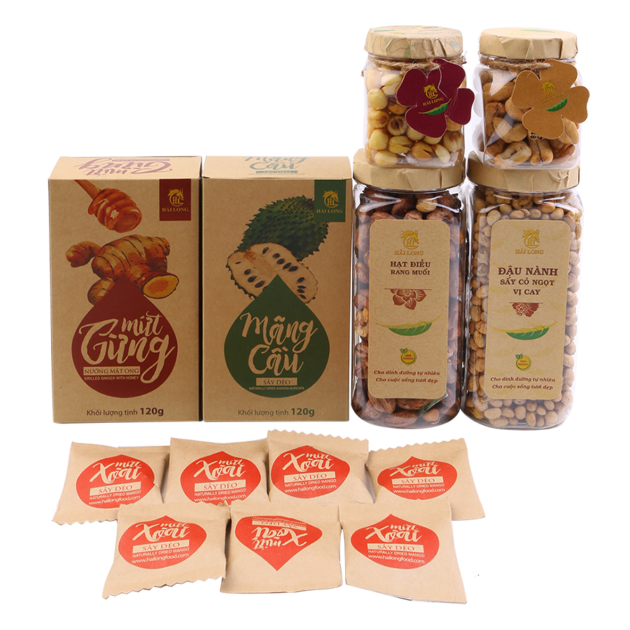 Hộp Quà Tết Thực Phẩm Cao Cấp Hải Long 05A các loại hạt và trái cây có vị ngon ngọt với những hương vị từ cay, chua cho đến ngọt, bùi đặc trưng cho hương