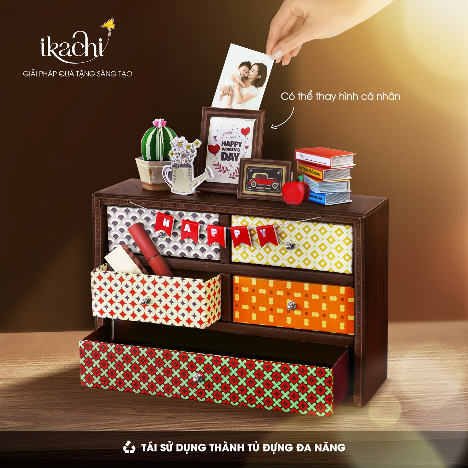 Hộp quà tặng cao cấp IKACHI "Tủ tri ân" sẽ là một món quà tặng vô cùng độc đáo dành cho cha mẹ, bạn bè nhân dịp kỷ niệm, sinh nhật. Sản phẩm có thể gắn hình ảnh cá nhân để tạo dấu ấn riêng cho món quà.