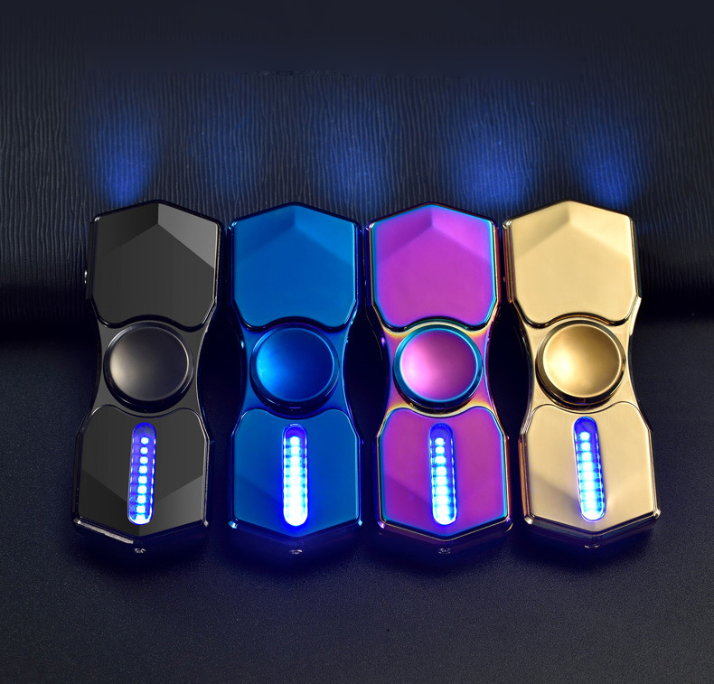 [Hộp Quẹt] Bật Lửa Hồng Ngoại Sạc Điện Qua Cổng USB Kiểu Dáng Spinner 3 Cánh Tạo 18 Hiệu Ứng Đèn Led