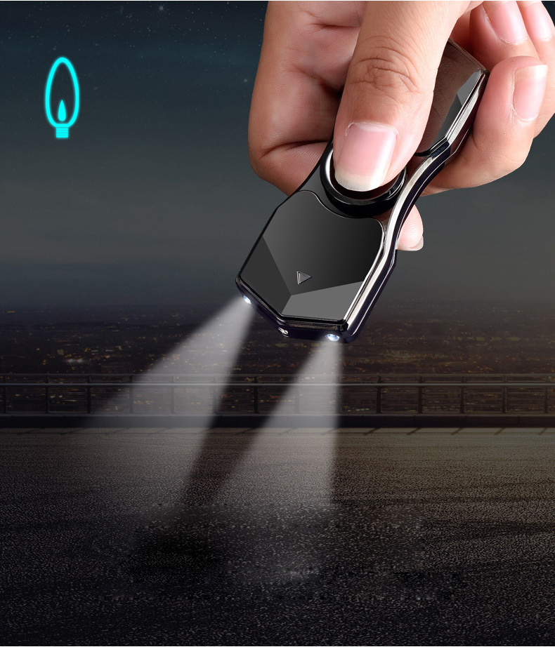 Bật Lửa Hồng Ngoại Kiêm Đèn Pin Sạc Điện USB Kiểu Con Quay Spinner Tạo 12 Hiệu Ứng #ĐènLED