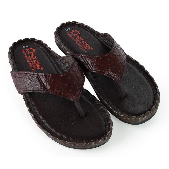 ✨HP7417-18-19-20 - Dép nam da đà điểu Huy Hoàng da hột đan màu đen, nâu đất, vàng bò, nâu đất