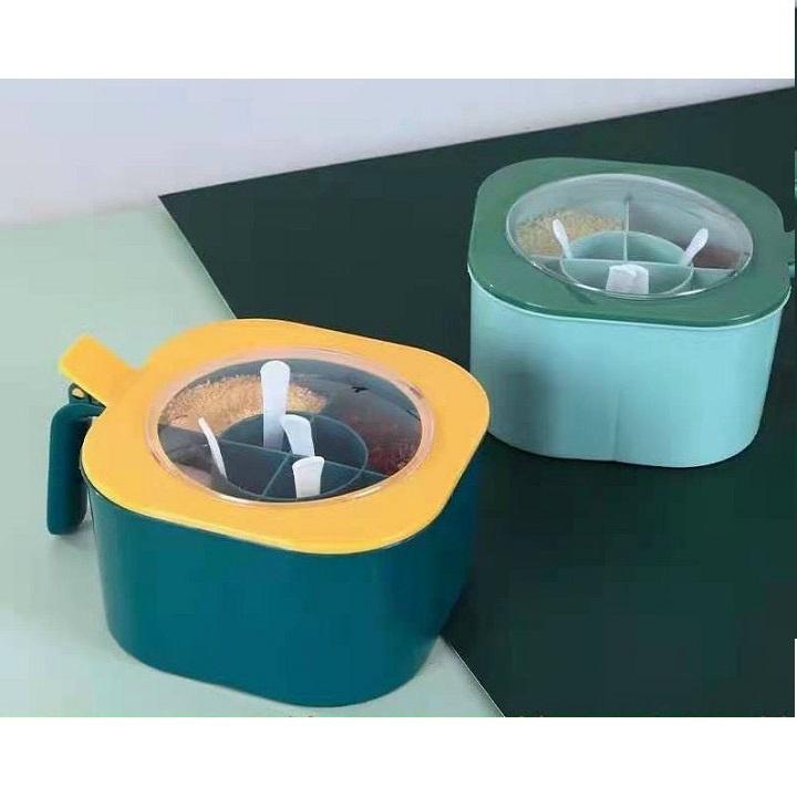 ✨HŨ ĐỰNG GIA VỊ 4 NGĂN CÓ NẮP ĐẬY kèm thìa cao cấp - Henrysa