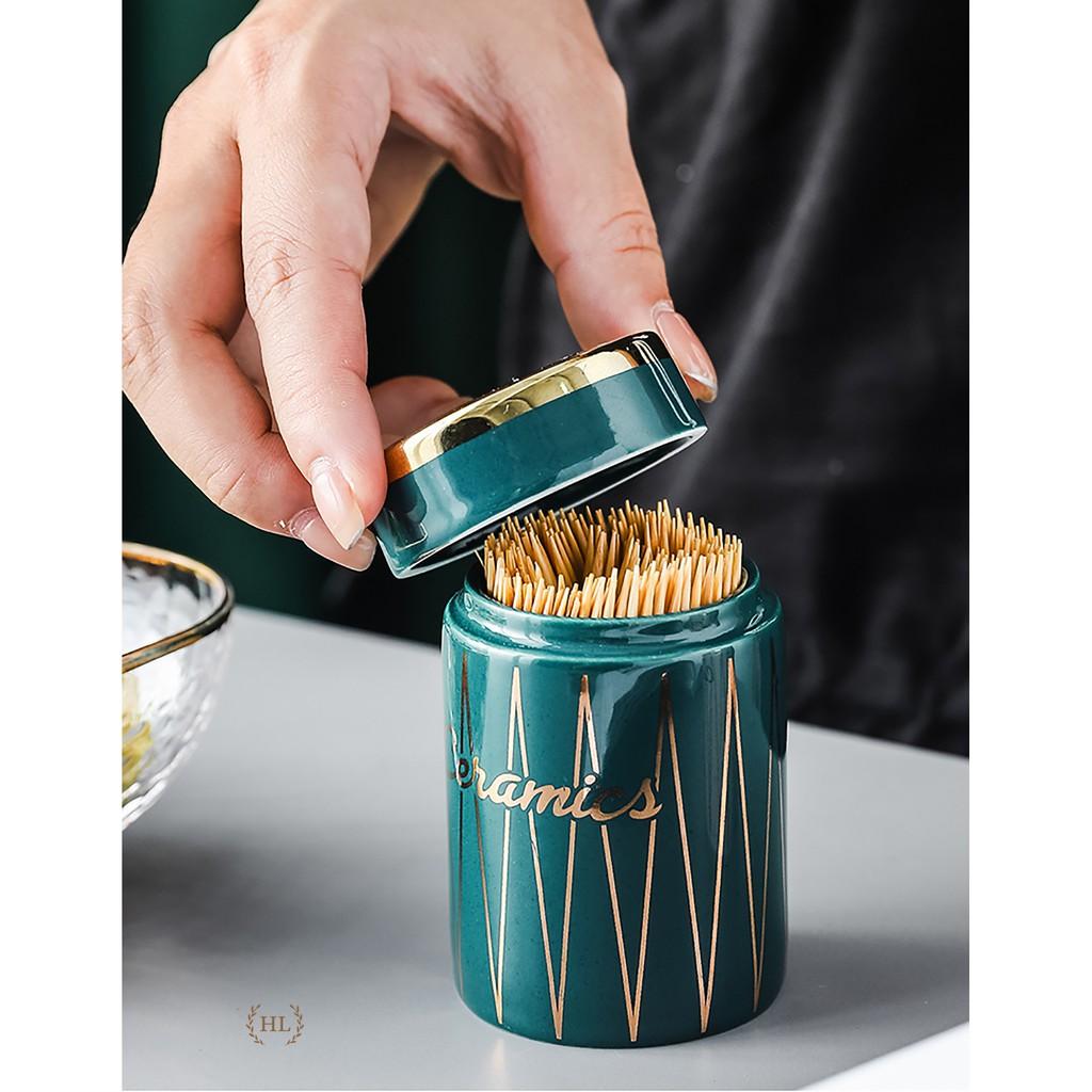 Hũ tăm bằng sứ cao cấp Màu sắc sang trọng Ngoài công dụng chính còn là phụ kiện trang trí trên bàn ăn