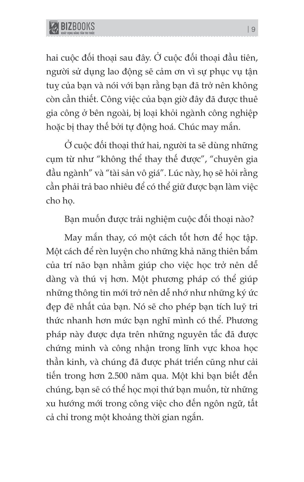 Bạn đã bao giờ ngồi xem một cách bị động video trên Youtube để rồi quên hết những gì m.ình đã xem chưa? Hay có khi ngồi đọc cả cuốn sách, tác giả cho tất cả những gì bạn biết nhưng bằng cách nào đó chưa đủ thỏa mãn. Để cải thiện khả năng tiếp nhận kiến thức nhanh, việc tạo ra môi trường học tích cực, sử dụng kỹ thuật học tập hiệu quả và duy trì quá trình ôn tập đều đặn là rất quan trọng. “Huấn luyện não bộ học siêu tốc” giúp bạn tiêu thụ kiến thức nhanh, dễ học, hiểu sâu, nhớ lâu - cuốn sáchmà Bizbooks xin trân trọng gửi đến quý độc giả.