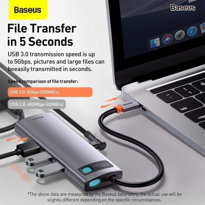 Thương hiệu: BASEUS Tính năng: HDMI/RJ45 Loại giao diện: USB Type-C Bao bì: Có Chứng nhận: CE, RoHS, FCC Chất liệu: Hợp kim nhôm Tốc độ truyền dữ liệu USB 3.0 5Gbps, tương thích ngược