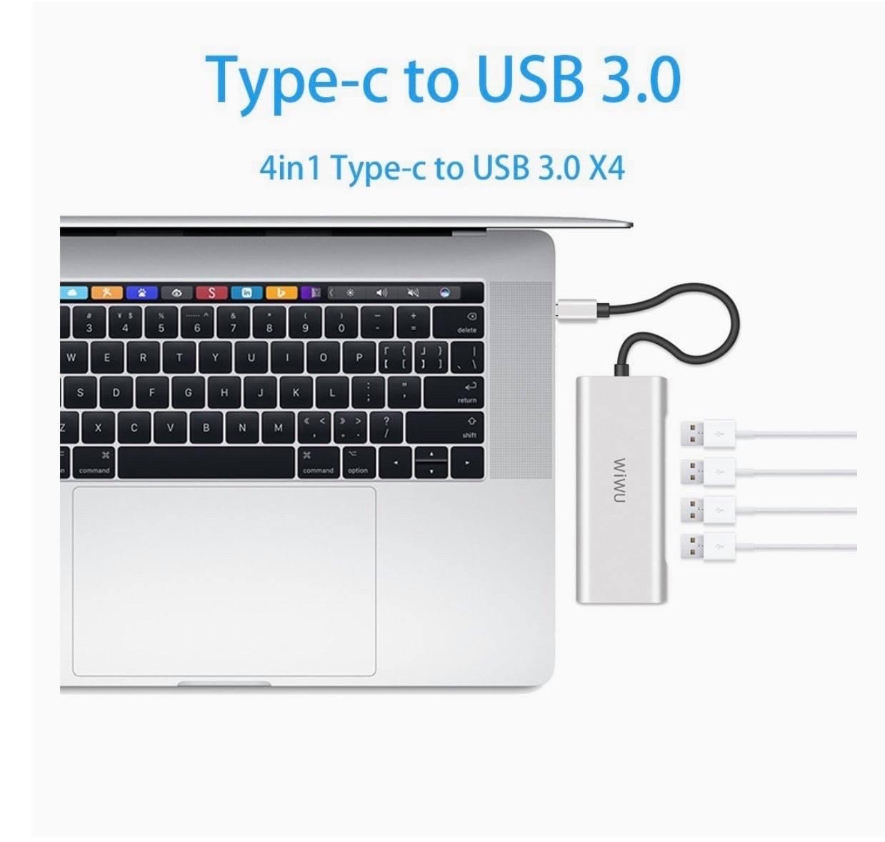 1. Input: USB 3.0 A Male 2. Output: USB 3.0 A Female × 4 3. Speed up to 5Gbps 4. Support 10 TB hard drive 5. With USB-C power port DC 5V 6. plug &