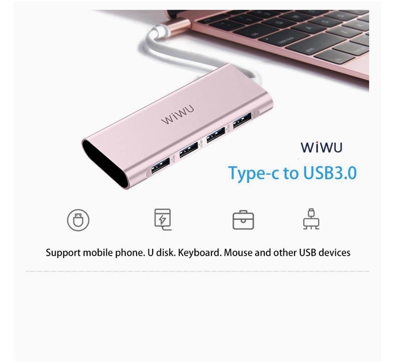 ✨Hub WiWu Alpha 4 in 1 A440 Cổng phụ Biến Một USB-C Chuyển Vào Bốn Cổng USB 3.0, Thiết Kế Mỏng Nhẹ - Hàng Chính Hãng