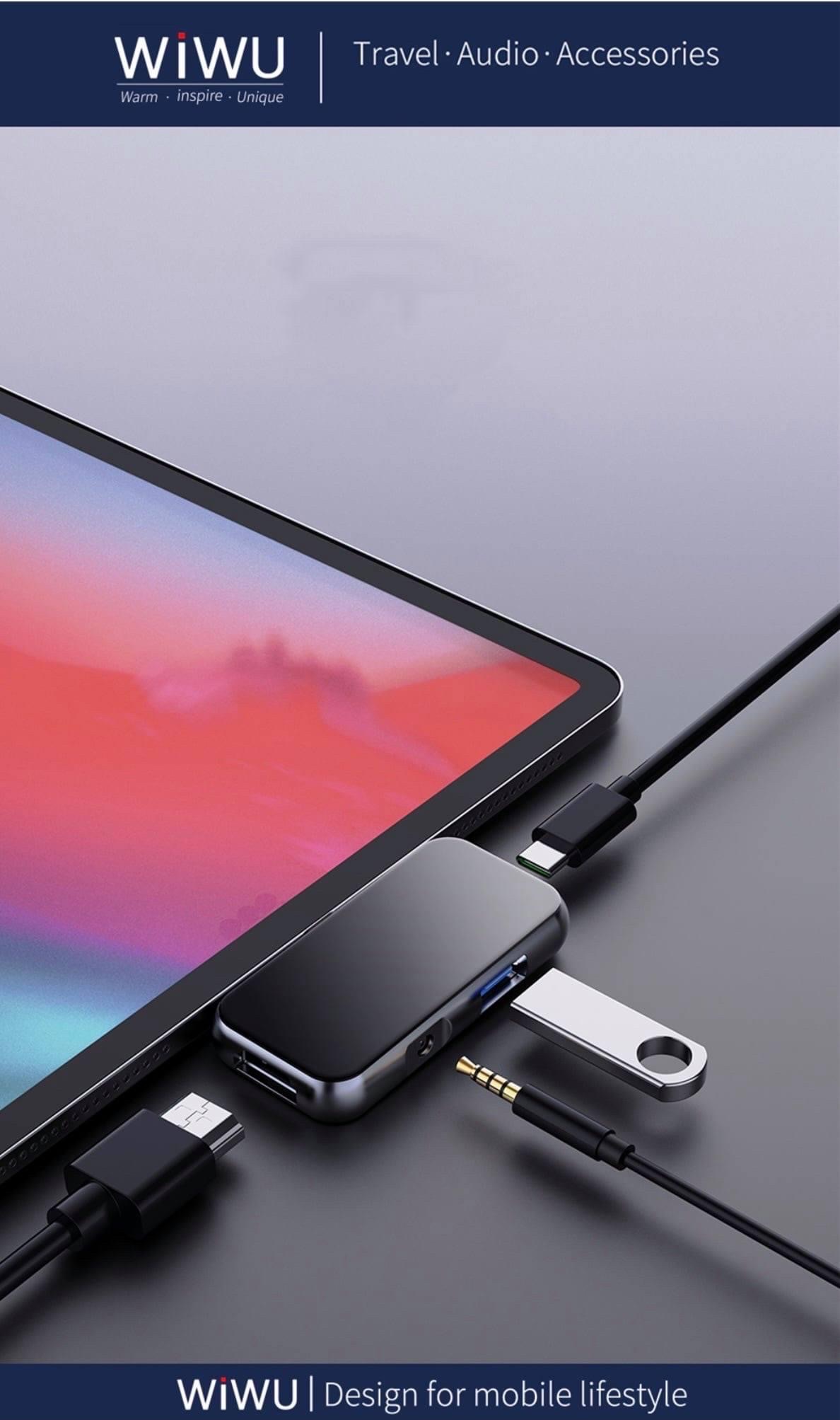 - Kích thước sản phẩm: 70 34,5 11mm Wiwu Alpha T5 Pro là một bộ chuyển đổi dùng để kết nối một số deyice hoặc phụ kiện với thiết bị của bạn như ổ USB Flash, chuột usb đến tai nghe 3.5mm . Nó cũng có thể được sử dụng để truyền dữ liệu với sự hiện diện của usb3.0 với khả năng truyền giữ liệu nhanh chóng , tốc độ , vận tốc