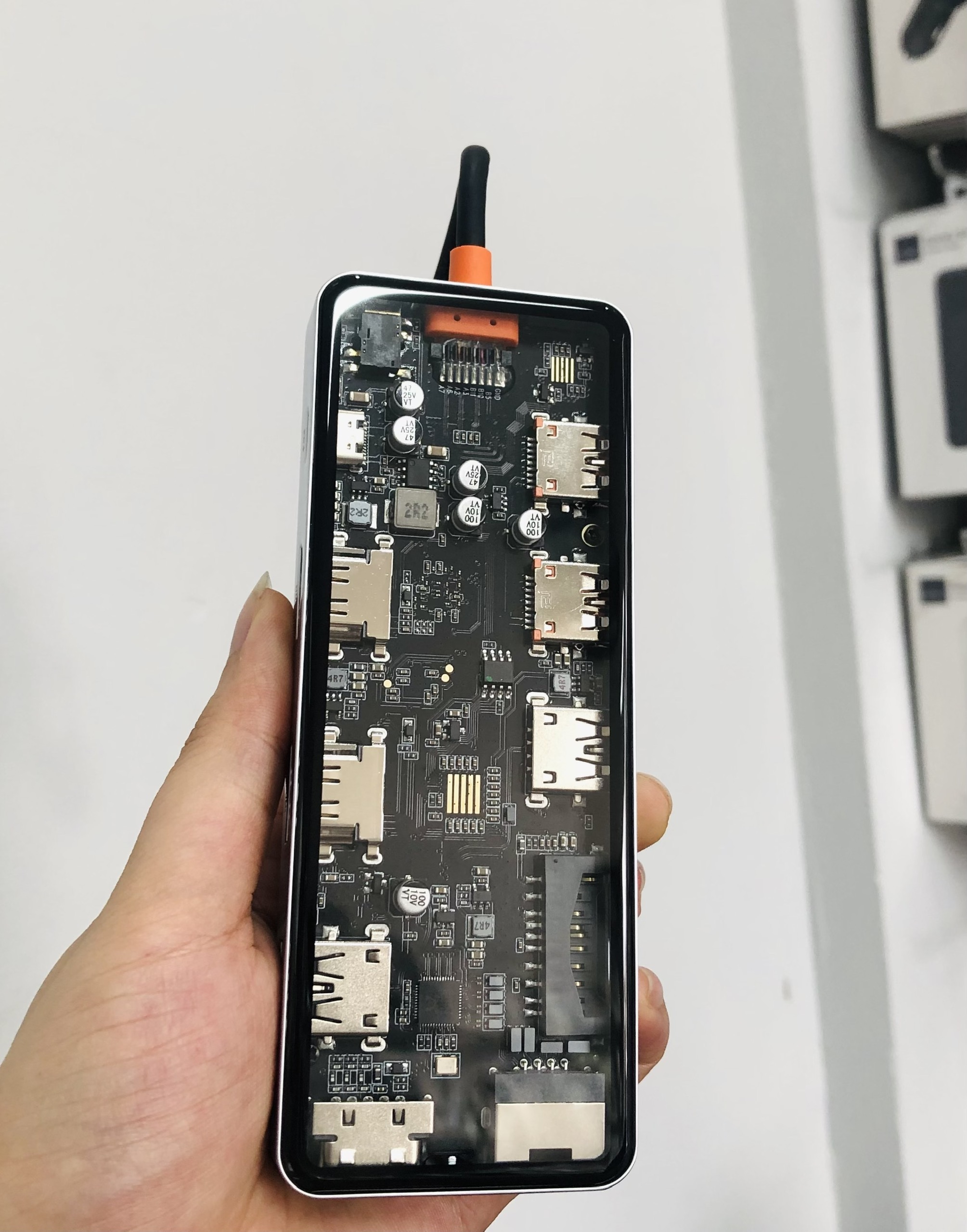 - Kiểu dáng nhỏ gọn dễ mang theo Đầu nối: Type-C Kết nối nhiều thiết bị hơn với nhiều cổng Truyền dữ liệu cực nhanh Chất liệu nhôm và mặt nhựa trong suốt để lộ ra phần vi mạch bên trong được sắp xếp rất ngăn nắp và đẹp mắt giúp tăng uy tín cho sản phẩm và hãng lên rất nhiều.