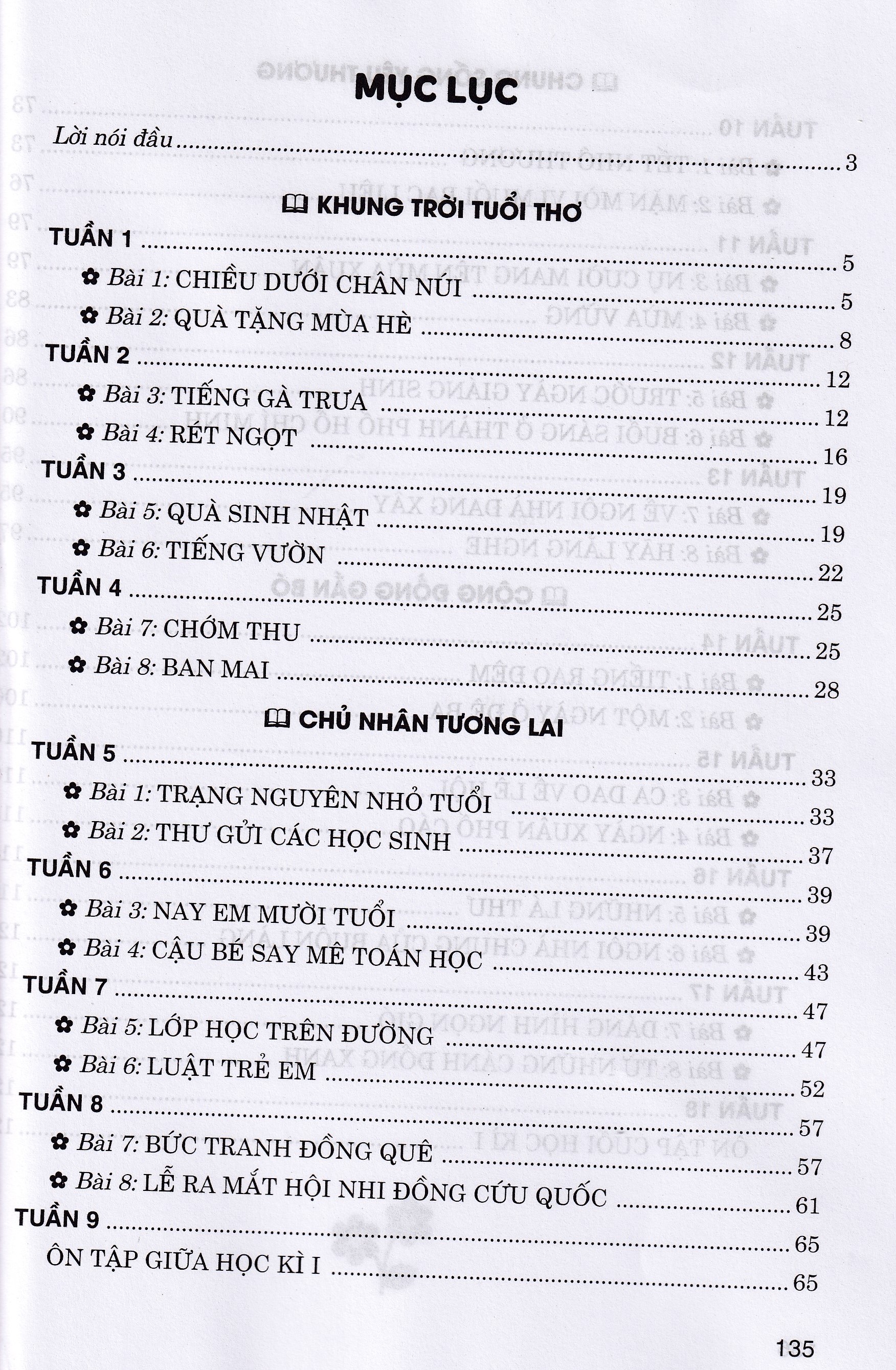 Bộ sách có đầy đủ các tuần, bài, chủ điểm và nội dung sau: