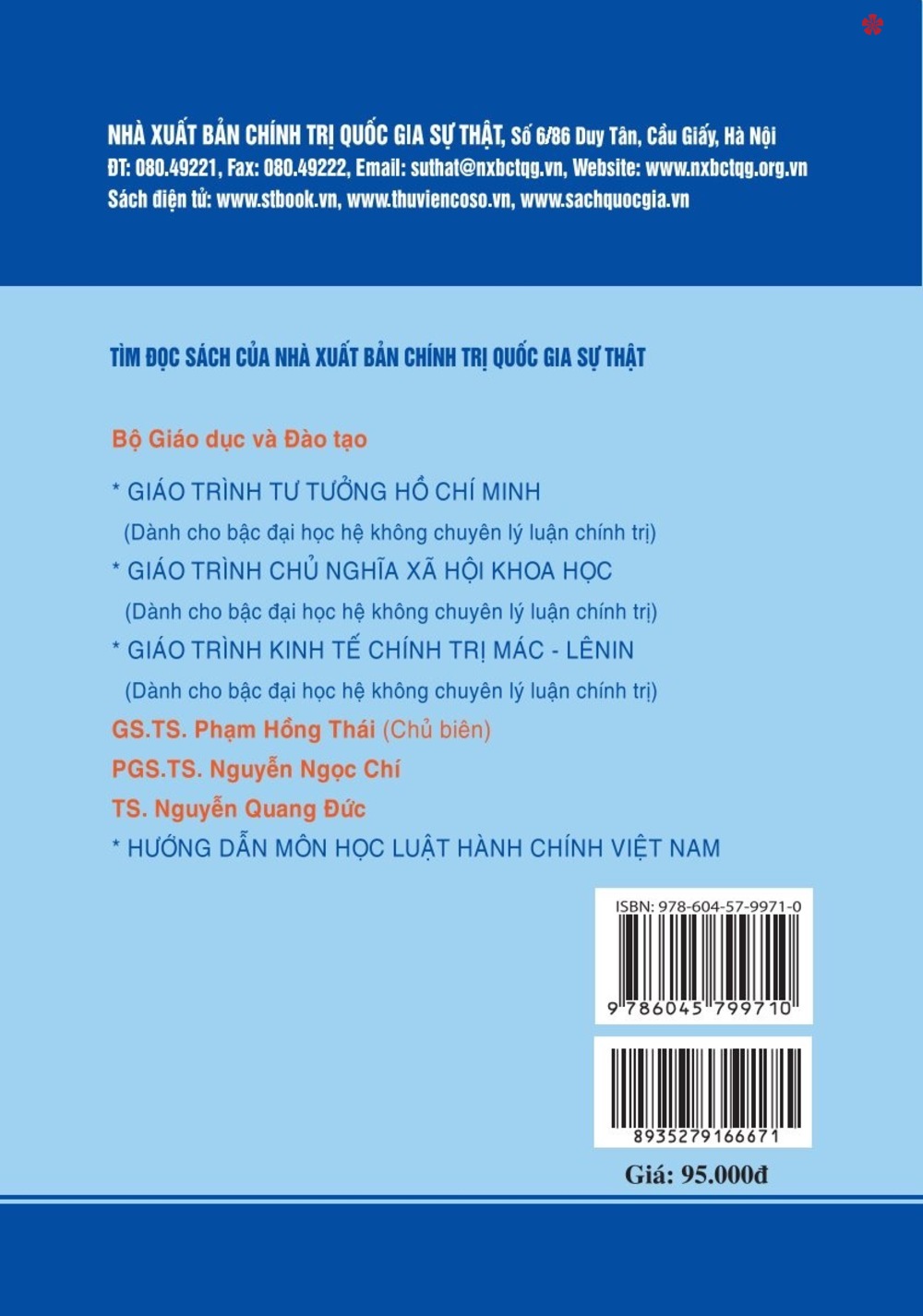 Mua tại TiktokNhằm hỗ trợ cho sinh viên, học viên các cơ sở đào tạo học tập, tìm hiểu, nghiên cứu các nội dung của môn học Luật Tố tụng hành chính Việt Nam một cách căn bản, có hệ thống, Nhà xuất bản Chính trị quốc gia Sự thật xuất bản cuốn sách Hướng dẫn môn học Luật Tố tụng hành chính Việt Nam do GS.TS Phạm Hồng Thái làm Chủ biên.