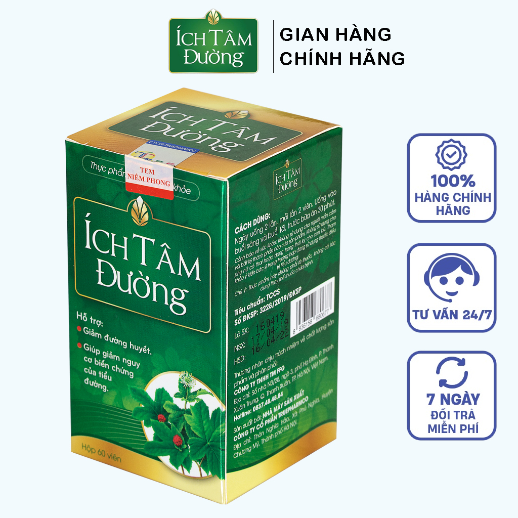 ✨ÍCH TÂM ĐƯỜNG - Hỗ Trợ Tiểu Đường, Giảm Và Ổn Định Đường Huyết hộp 60 viên