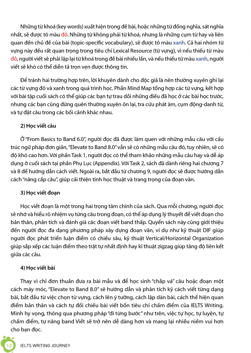 IELTS Writing Journey - Elevate To Band 8.0Lộ trình tự học IELTS Writing đạt 8.0, cuốn sách được cựu giám khảo IELTS và các chuyên gia tin tưởng giới thiệu.Học quài quài nhưng band điểm không tăng...