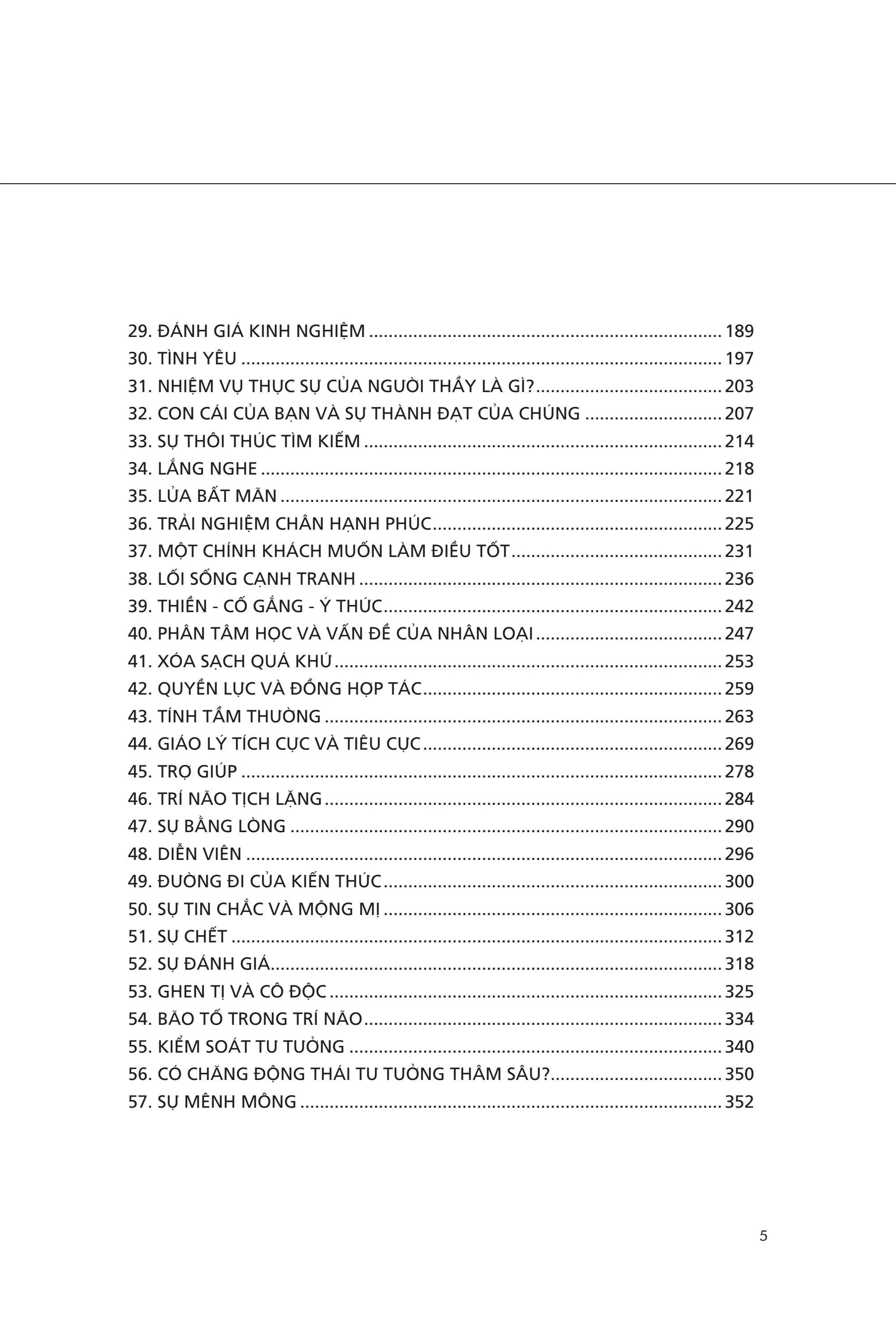 Qua những buổi nói chuyện ngắn gọn, Krishnamurti đã chỉ ra chính vấn đề mới quan trọng, chứ không phải câu trả lời. Nếu chúng ta tìm kiếm một lời giải, chúng ta sẽ tìm thấy; nhưng vấn đề sẽ vẫn còn y nguyên, bởi vì lời giải không liên quan gì với vấn đề. Công cuộc tìm kiếm của chúng ta là nhằm lẩn trốn vấn đề, và lời giải là một cách cực kỳ hời hợt, nông cạn, vì vậy không có thấu hiểu vấn đề. Tất cả những vấn đề nảy sinh từ một nguồn cội, và nếu không thấu hiểu nguồn gốc ấy, bất kỳ cố gắng nào để giải quyết những vấn đề chỉ dẫn đến hỗn loạn và đau khổ thêm mà thôi.