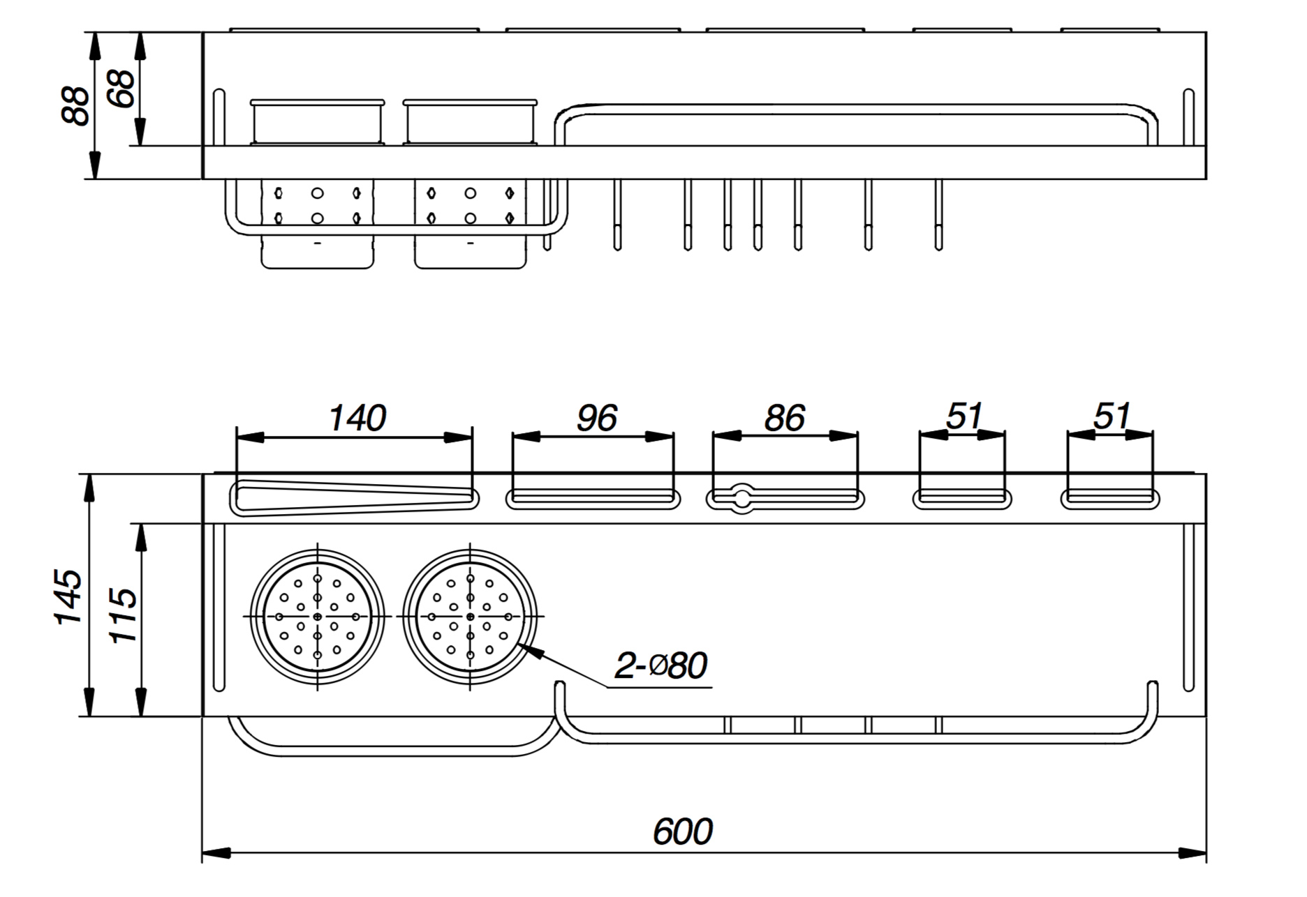 KỆ BÁT ĐĨA CỐ ĐỊNH KHUNG NHÔM EURONOX EUA-90.304 Quy Cách SP (R*S*C): W865*D280*H650 Khoang tủ (mm): 900