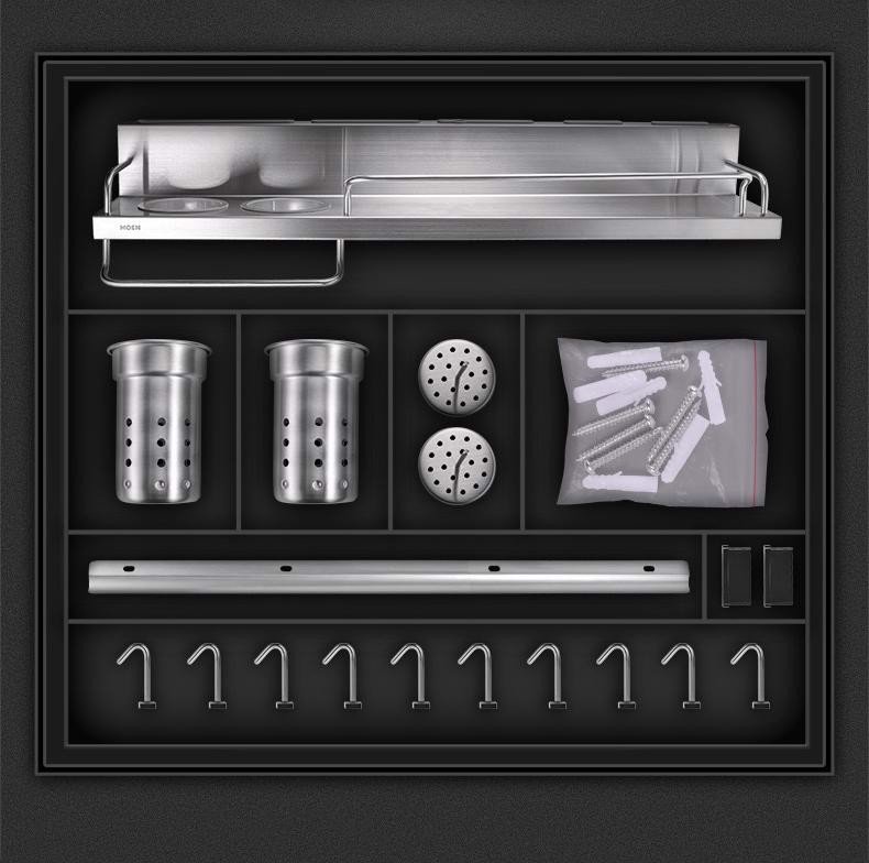 - Kệ gia vị tích hợp ống cắm đũa và khe cắm dao Moen KAC0102SL