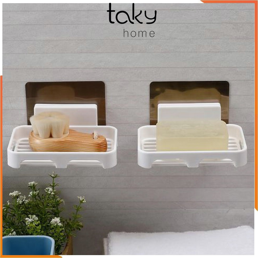 Giá Nhựa Trắng Để Xà Phòng Dán Tường Nhà Tắm Với Miếng 3M Siêu Chắc, TakyHome, Tiện Ích Giúp Cục Xà Bông Tắm Nhanh Khô Và Sạch Sẽ