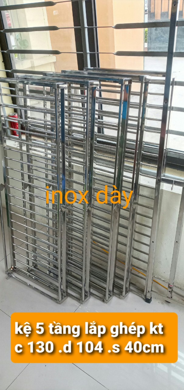 Mua tại Tiktokcty inox khởi hòa chuyên sx các sp về inox , với dòng sp kệ để đồ nhà bếp được cty sx như sau 1/ khung chính của kệ được làm bằng hộp vuông 2x2 cm ,các tầng của kệ được đan bằng phi 10mm ,khoảng cách các nan là 4cm 2 / kích thước kệ cao 130cm .dài 104cm, sâu 40cm 3 / kệ được thiết kế 5 tầng và được lắp ghép bằng bulong inox 4 / kệ dùng cho soong nồi ,bát đĩa ,dao thớt vv