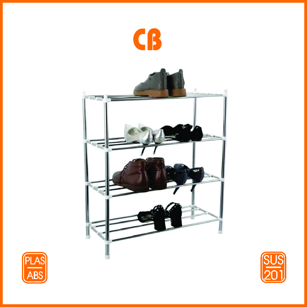 Sản phẩm KỆ GIÀY DÉP INOX 4 TẦNG CB cao cấp xuất xứ tại Việt Nam, với các thanh inox chắc chắn, giúp chúng ta có thể lưu trữ & quản lý hàng chục đôi